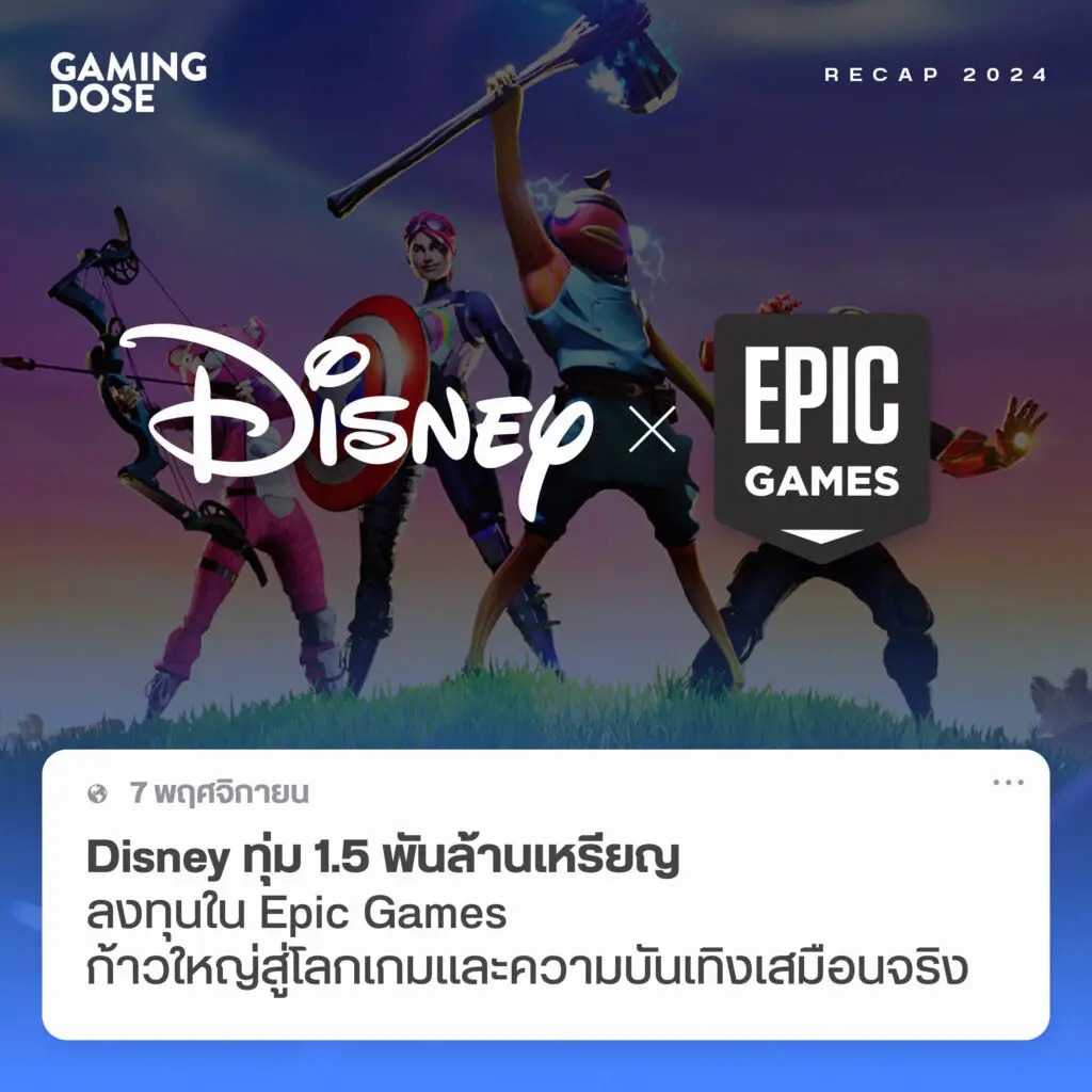 2024 ยังเป็นปีที่กลุ่มทุนใหญ่ยังลงทุนในตลาดเกมแบบต่อเนื่อง ซึ่งรายที่ใหญ่ที่สุดของปีนี้ก็คงจะหนีไม่พ้นการที่ The Walt Disney Company ประกาศการลงทุนครั้งสำคัญในเดือนกุมภาพันธ์ ด้วยการทุ่มเงิน 1.5 พันล้านเหรียญสหรัฐ เพื่อเข้าถือหุ้นบางส่วนของ Epic Games เจ้าของเกมยอดฮิตอย่าง Fortnite