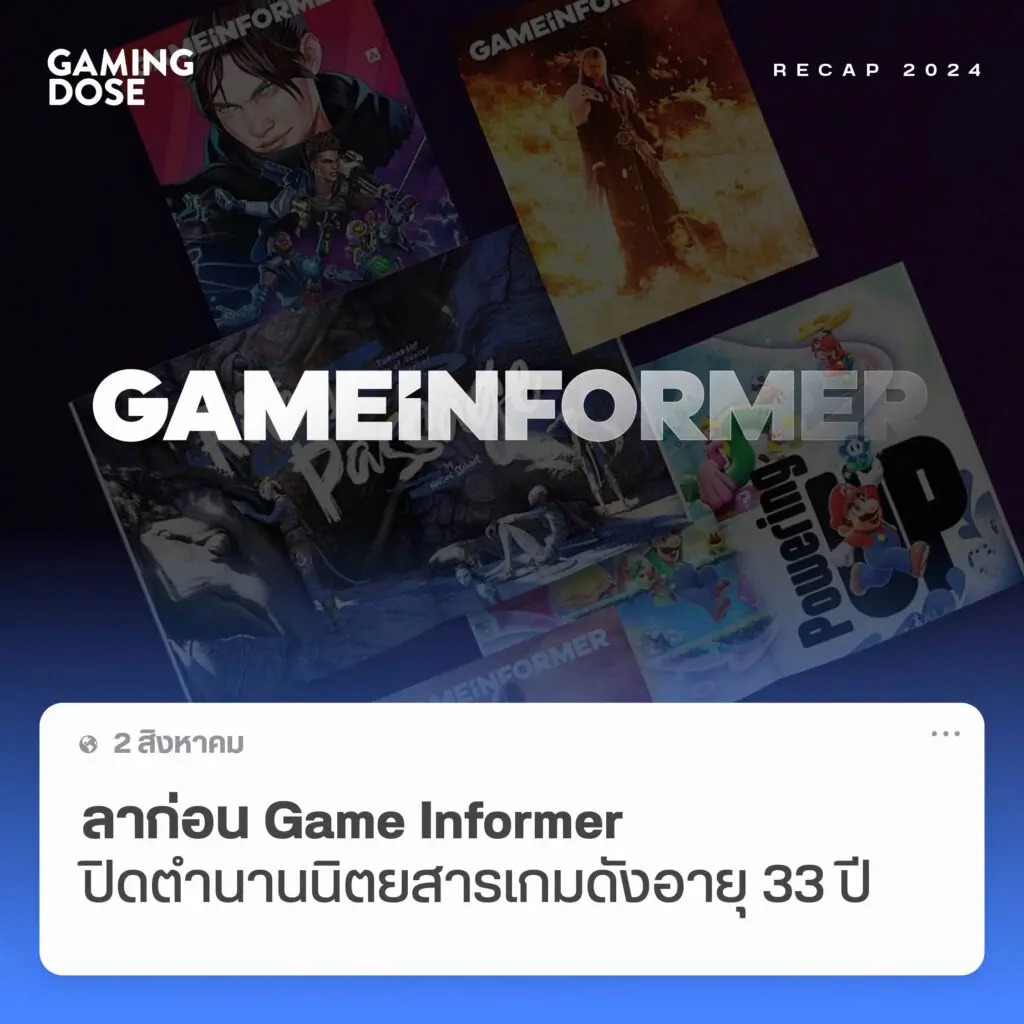 อีกข่าวสะเทือนใจของวงการเกมในปีนี้คือการปิดตัวของ Game Informer นิตยสารเกมชื่อดังที่ดำเนินกิจการมาอย่างยาวนานถึง 33 ปี โดย GameStop บริษัทแม่ผู้ถือครองนิตยสารเจ้าดังระดับตำนานได้ประกาศปิดตัวอย่างกะทันหันพร้อมปลดพนักงานทั้งหมด แม้ฉบับใหม่จะมีความคืบหน้าไปแล้วถึง 70%